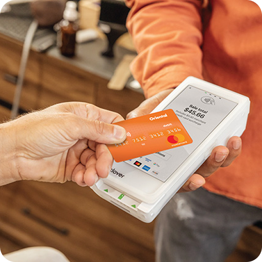 Ciertos términos, restricciones y condiciones aplican. Clover, Valor, Verifone y SwipeSimple son marcas independientes de terminales de pago. Dynamics Payments, Evertec y Clover son proveedores independientes de servicios de procesamiento de pagos. Depósitos realizados en puntos de venta se aplicarán a su cuenta el mismo día condicionado a que el corte o cierre del terminal sea completado previo a la hora del corte del procesador. Equipos podrían requerir servicio de internet. Uso de servicio de pago conlleva cargos. Favor de comunicarse con Oriental para precios por servicio. ATH Móvil es un servicio de la Red ATH ® de Evertec Group, LLC. disponible como método de pago aceptado en terminales habilitados. Productos ofrecidos por Oriental Bank, Miembro FDIC.