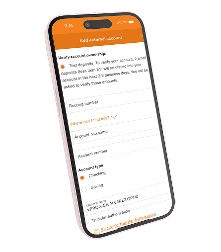 Make secure transfers and add external accounts effortlessly using our app.