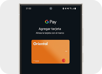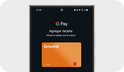 Sujeto a aprobación y a disponibilidad en tu línea de crédito y/o balances en la cuenta atada a la tarjeta débito. Ciertos términos, condiciones y restricciones pueden aplicar según el proveedor. Oriental Bank no se hace responsable de fallas o problemas con los proveedores que puedan impedir el realizar una transacción. Nos reservamos el derecho de eliminar el uso de alguno de este proveedor a nuestra discreción. Google Pay utiliza data de internet para realizar las transacciones. Consulta tu proveedor de servicio móvil para conocer más sobre tu plan y ver cómo se puede ver afectado. Visita la página web de Google Pay para conocer los dispositivos compatibles con el servicio. Los productos de crédito no están garantizados ni asegurados por el FDIC. Oriental Bank, Miembro FDIC.